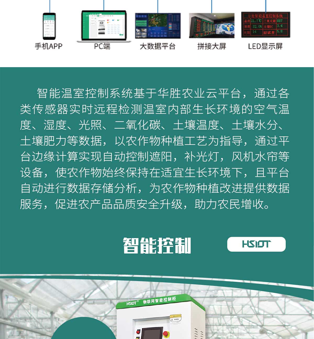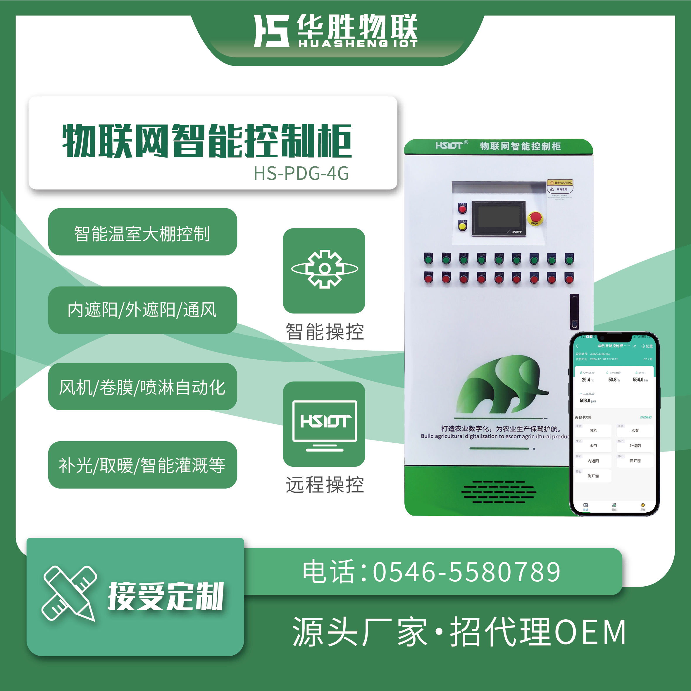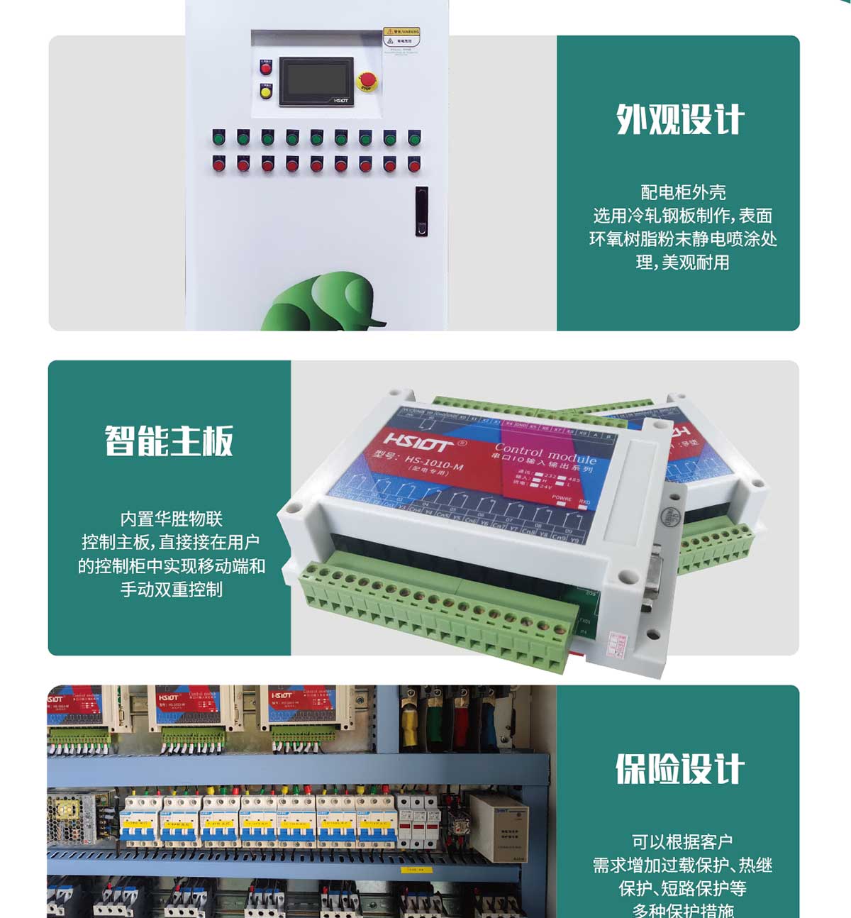 產(chǎn)品簡介 : 華勝物聯(lián)網(wǎng)智能控制柜實(shí)現(xiàn)了運(yùn)用手機(jī)微信小程序綁定賬戶就可以遠(yuǎn)程控制溫室中的設(shè)備運(yùn)作,控制柜采用標(biāo)準(zhǔn)化生產(chǎn)線,設(shè)計(jì)、布局、安裝、走線等流程簡明、精準(zhǔn),可根據(jù)客戶的需求添加電路保護(hù)措施,如過載保護(hù)、熱繼保護(hù)等多種保護(hù)措施,防止電路危險(xiǎn)的發(fā)生,在用電安全上做到了防患于未然。
