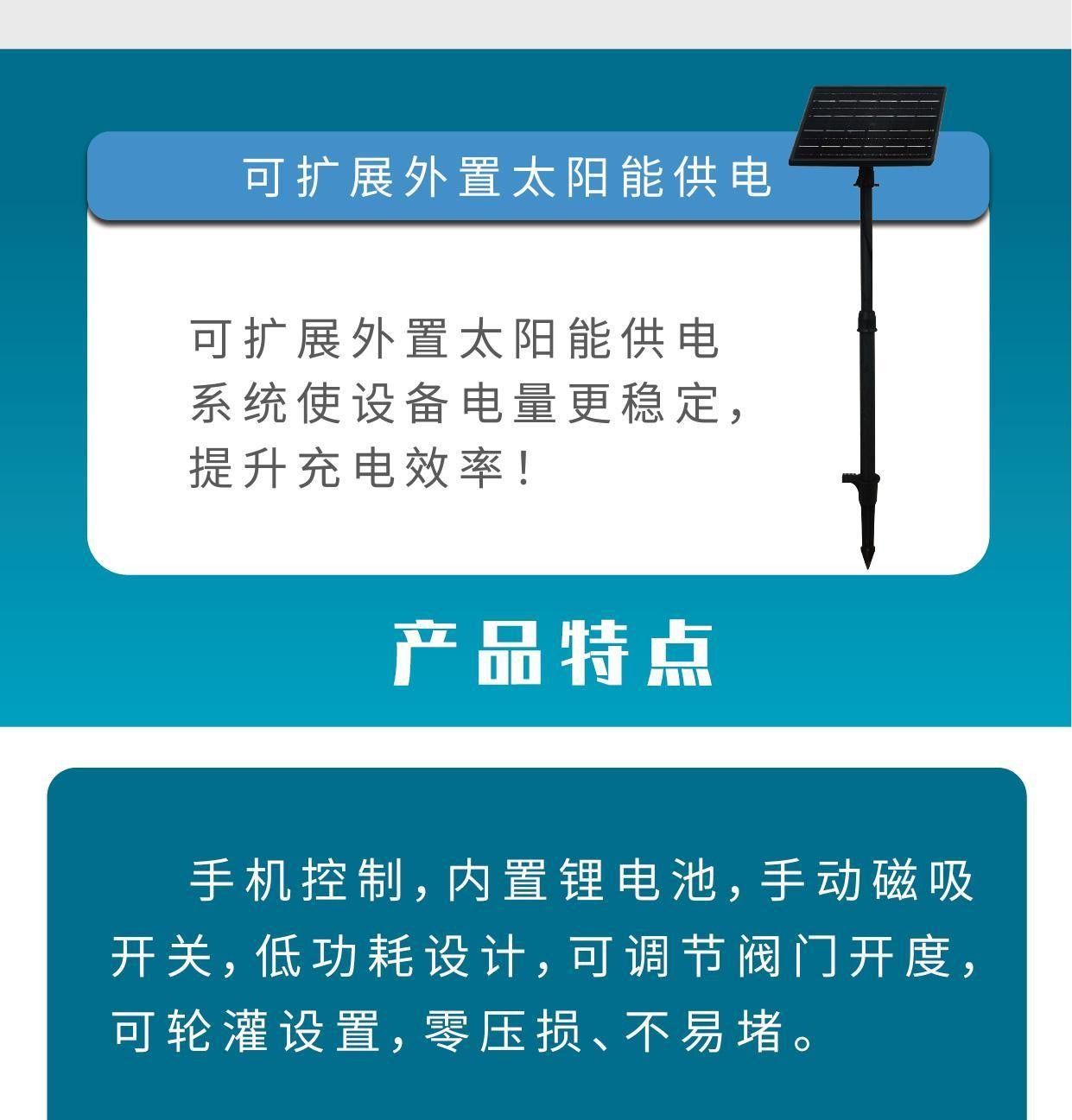 產(chǎn)品簡介 : 數(shù)字電動(dòng)球閥可手機(jī)控制,內(nèi)置鋰電池,手動(dòng)磁吸開關(guān),低功耗設(shè)計(jì),可調(diào)節(jié)閥門開度,可灌溉設(shè)置、零壓損、不宜堵