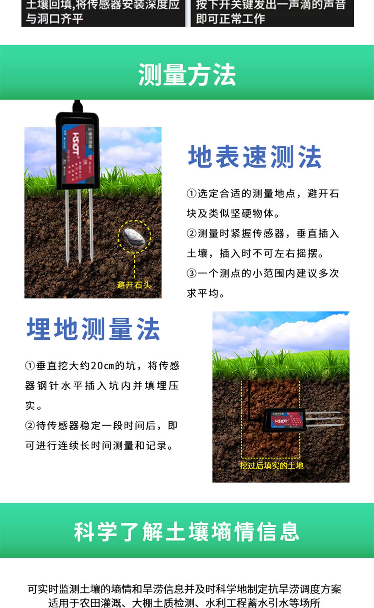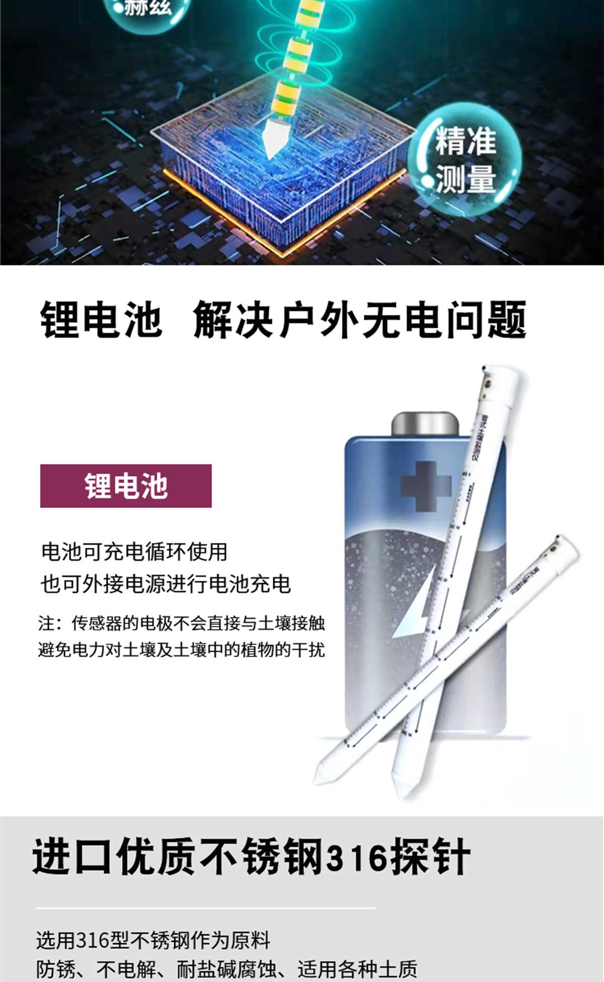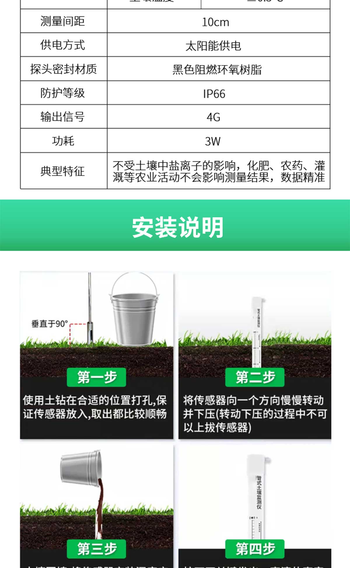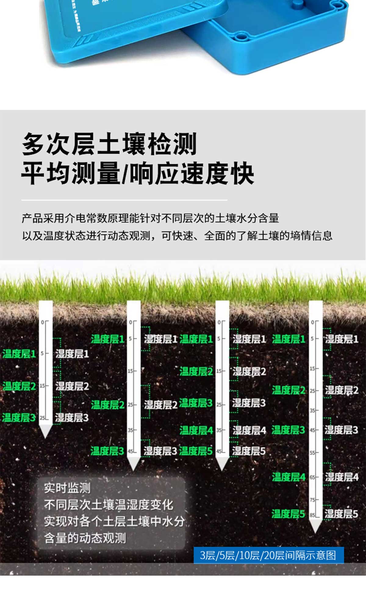 產(chǎn)品簡介 : 土壤墑情監(jiān)測站是一款高度集成、低功耗、可快速安裝、便于野外監(jiān)測使用的高精度自動氣象觀測設(shè)備。 該設(shè)備支持4G傳輸方式,免調(diào)試,可快速布置,廣泛應(yīng)用于農(nóng)業(yè)、林業(yè)、地質(zhì)、高校、科研等方面。主要針對土壤水分含量和土壤溫度進(jìn)行監(jiān)測,通過水分傳感器和溫度傳感器測量土壤的體積含水量(VWC)和溫度值。同時,根據(jù)用戶需求,可以擴(kuò)展配置土壤電導(dǎo)率、土壤PH、空氣溫度、空氣濕度、太陽輻射、雨量等氣象傳感器。