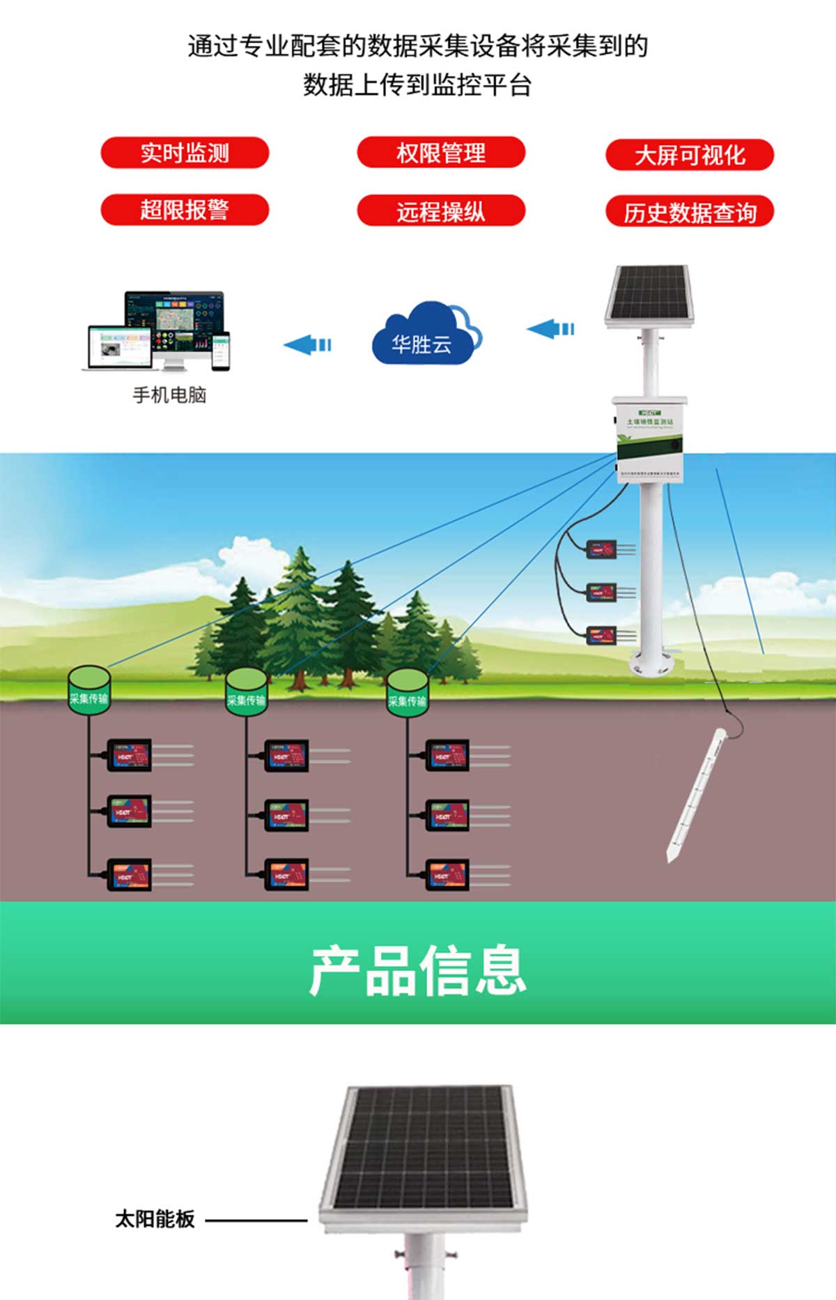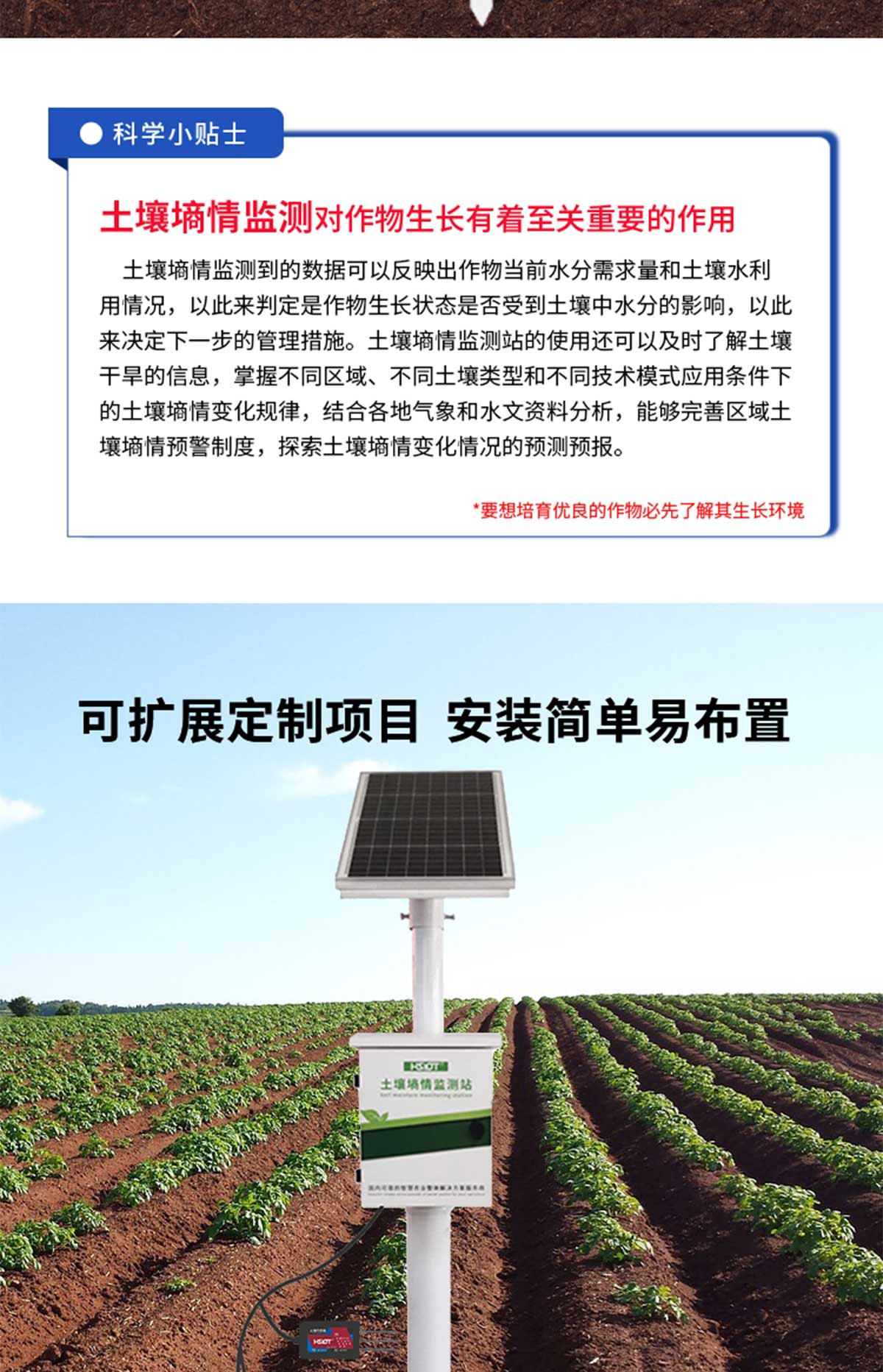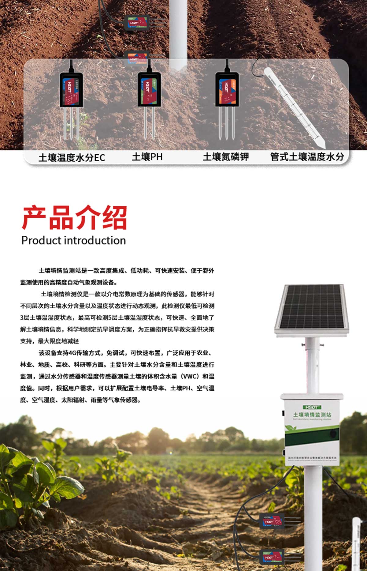 產(chǎn)品簡(jiǎn)介 : 土壤墑情監(jiān)測(cè)站是一款高度集成、低功耗、可快速安裝、便于野外監(jiān)測(cè)使用的高精度自動(dòng)氣象觀測(cè)設(shè)備。 該設(shè)備支持4G傳輸方式,免調(diào)試,可快速布置,廣泛應(yīng)用于農(nóng)業(yè)、林業(yè)、地質(zhì)、高校、科研等方面。主要針對(duì)土壤水分含量和土壤溫度進(jìn)行監(jiān)測(cè),通過(guò)水分傳感器和溫度傳感器測(cè)量土壤的體積含水量(VWC)和溫度值。同時(shí),根據(jù)用戶(hù)需求,可以擴(kuò)展配置土壤電導(dǎo)率、土壤PH、空氣溫度、空氣濕度、太陽(yáng)輻射、雨量等氣象傳感器。