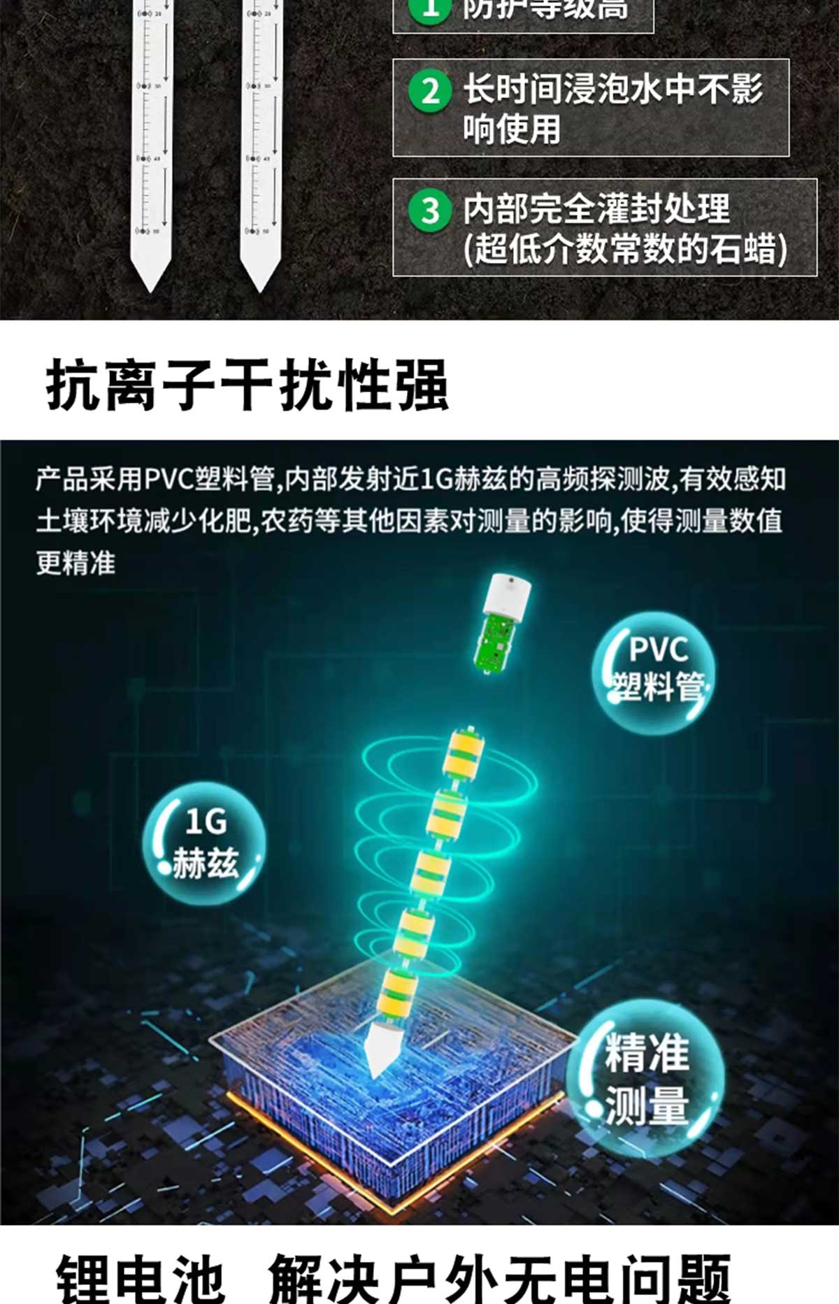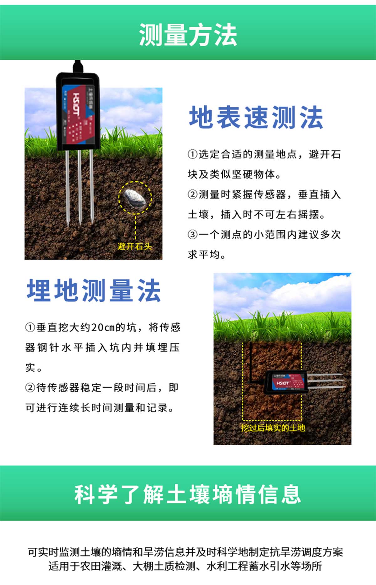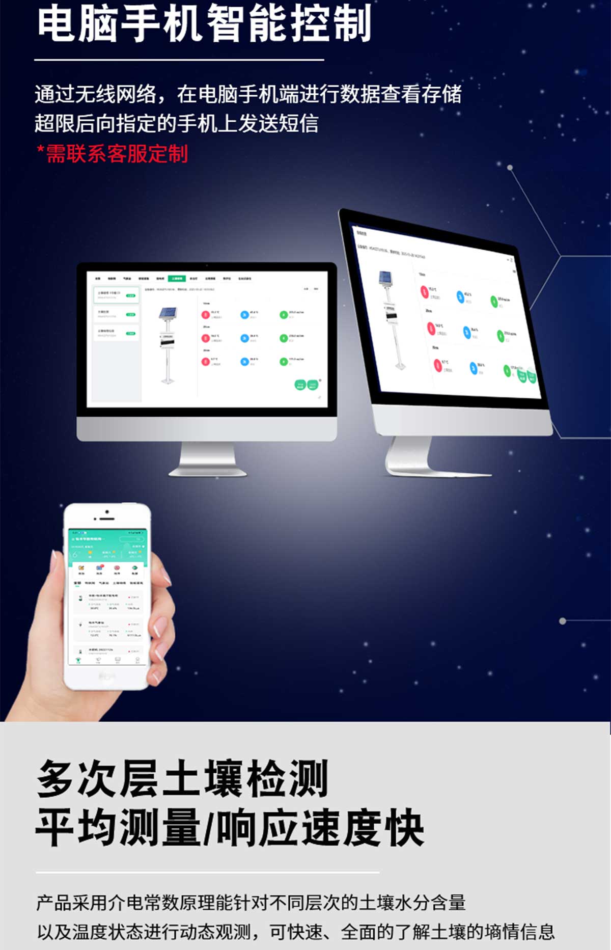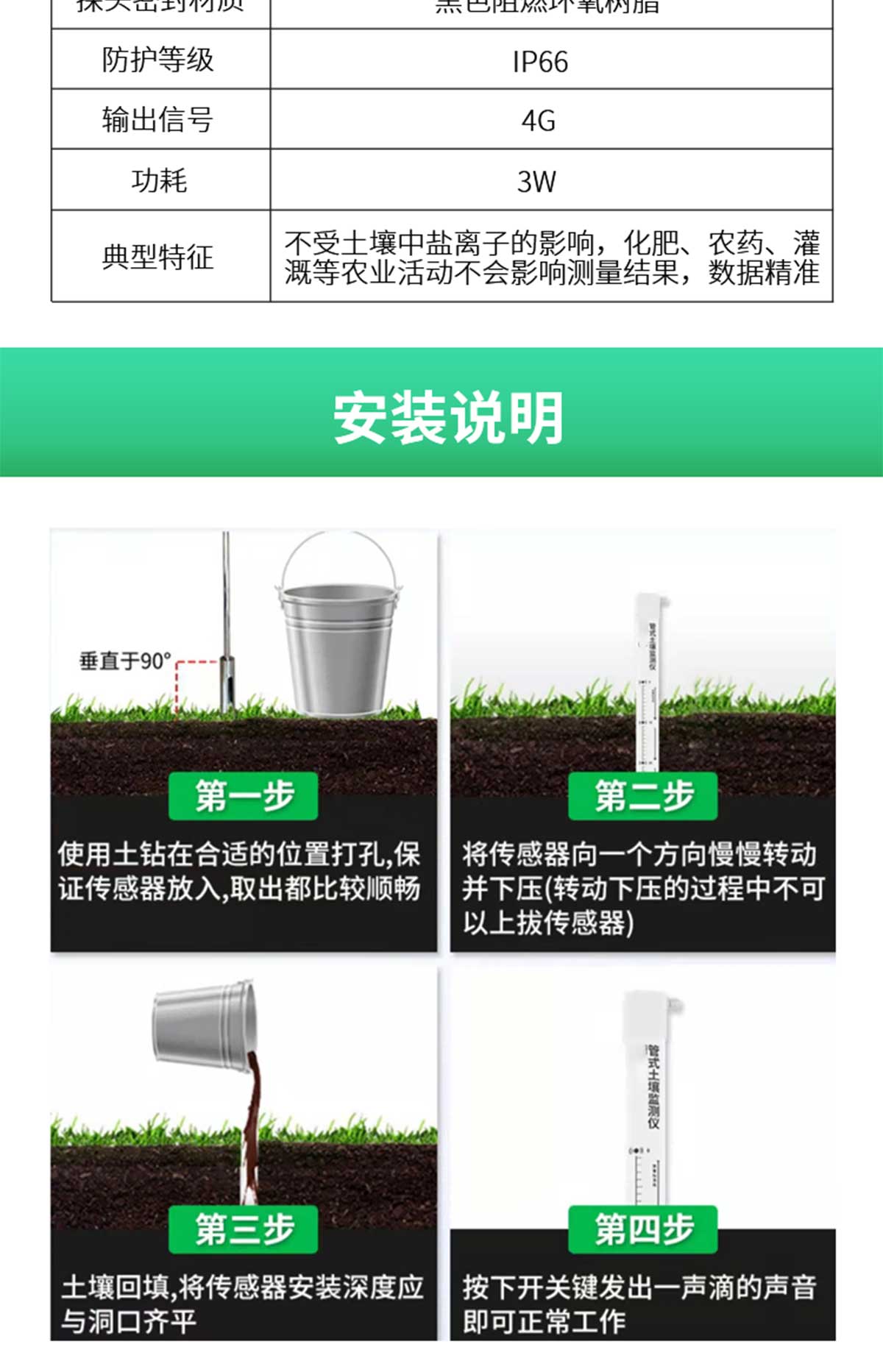 產(chǎn)品簡(jiǎn)介 : 土壤墑情監(jiān)測(cè)站是一款高度集成、低功耗、可快速安裝、便于野外監(jiān)測(cè)使用的高精度自動(dòng)氣象觀測(cè)設(shè)備。 該設(shè)備支持4G傳輸方式,免調(diào)試,可快速布置,廣泛應(yīng)用于農(nóng)業(yè)、林業(yè)、地質(zhì)、高校、科研等方面。主要針對(duì)土壤水分含量和土壤溫度進(jìn)行監(jiān)測(cè),通過(guò)水分傳感器和溫度傳感器測(cè)量土壤的體積含水量(VWC)和溫度值。同時(shí),根據(jù)用戶(hù)需求,可以擴(kuò)展配置土壤電導(dǎo)率、土壤PH、空氣溫度、空氣濕度、太陽(yáng)輻射、雨量等氣象傳感器。