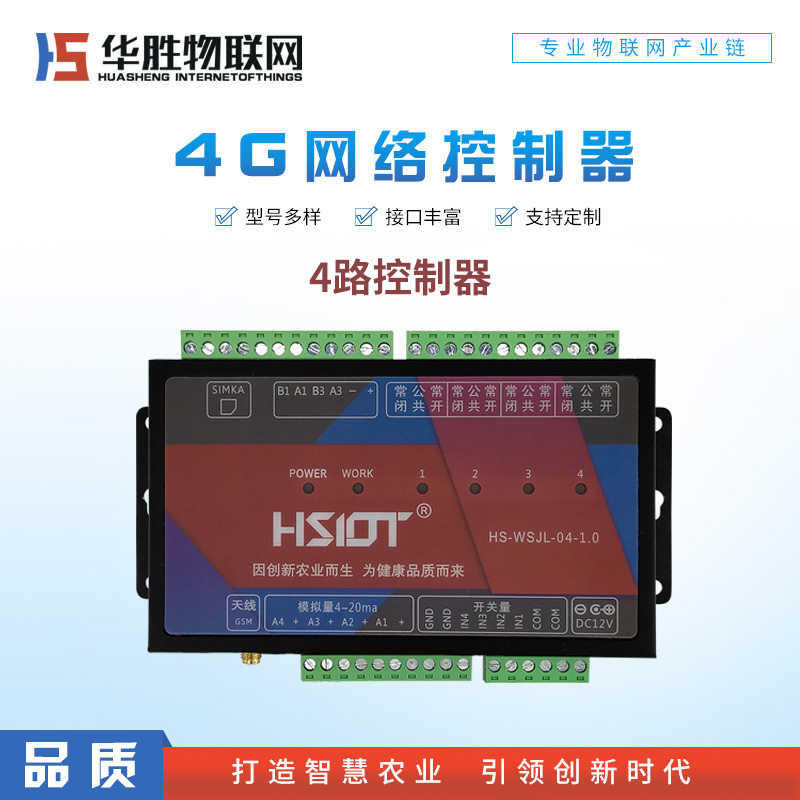 產(chǎn)品簡介 : 4G網(wǎng)絡(luò)控制器是一款性能優(yōu)良,性價比極高的產(chǎn)品??煽刂?路/8路/16路/24路/10路+…128路;采用GPRS模塊鏈接服務(wù)器,無需布置網(wǎng)線;用戶可接入我司云平臺結(jié)合華勝APP使用;并通過APP綁定傳感器,讀取傳感器數(shù)據(jù)上傳服務(wù)器,通過APP設(shè)置條件,進(jìn)行自動化控制;控制板是溝通傳感器和移動端的橋梁,可以直接接在用戶的控制柜中實現(xiàn)移動端和手動雙重控制;更輕松,更智能的控制農(nóng)業(yè)大棚。